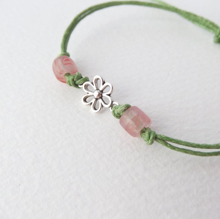 fully adjustable Tibetan Silver small flower with lovely glass beads.