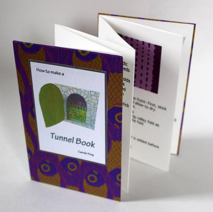 Tunnel books are special picture books that contain an illustrated scene held together with concertina folded sides and are like a small theatre with scenery. Each layer of the scene is pierced with holes that allow you to see what is in the next layer.