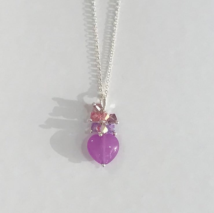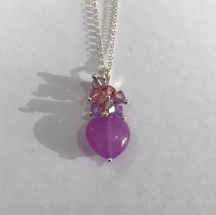 Above the heart is a little cluster of Swarovski bicones in light violet, vintage rose, blush pink and light rose.
