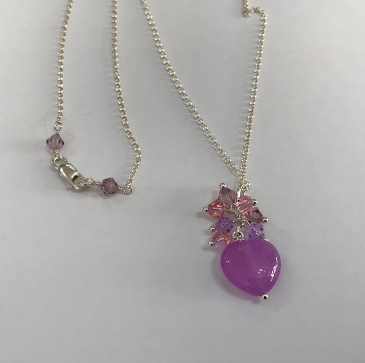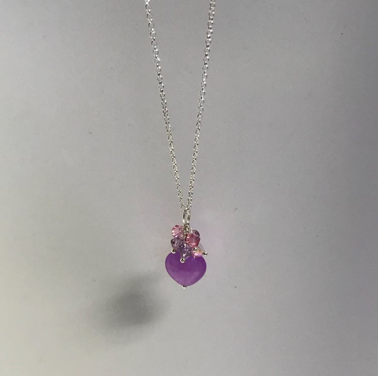 The pendant consists of a gorgeous lavender jade heart in a lovely rich pinky purple.