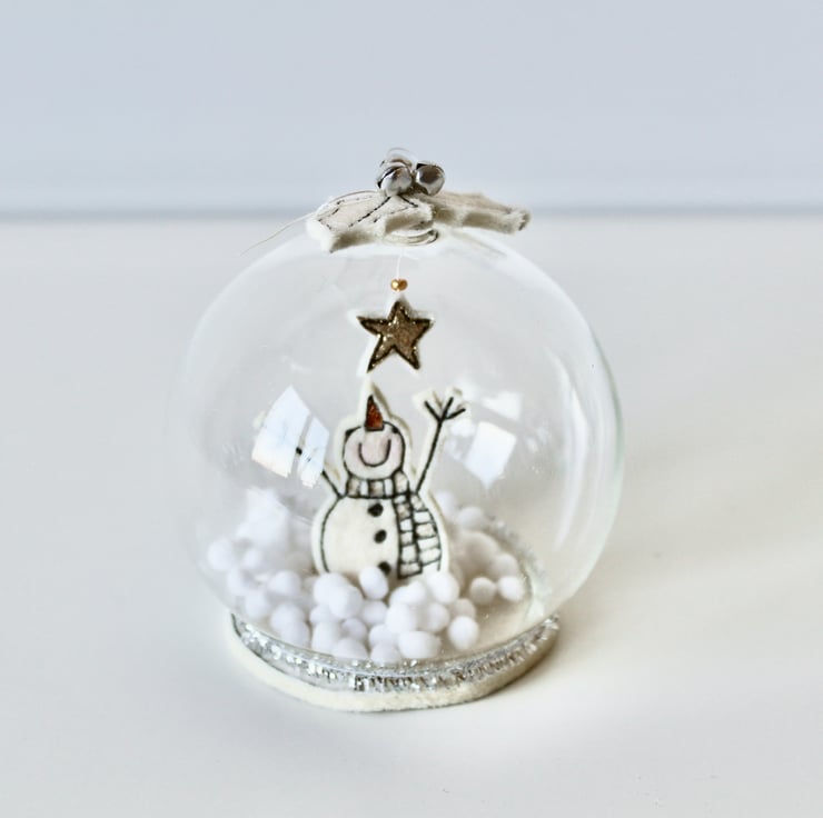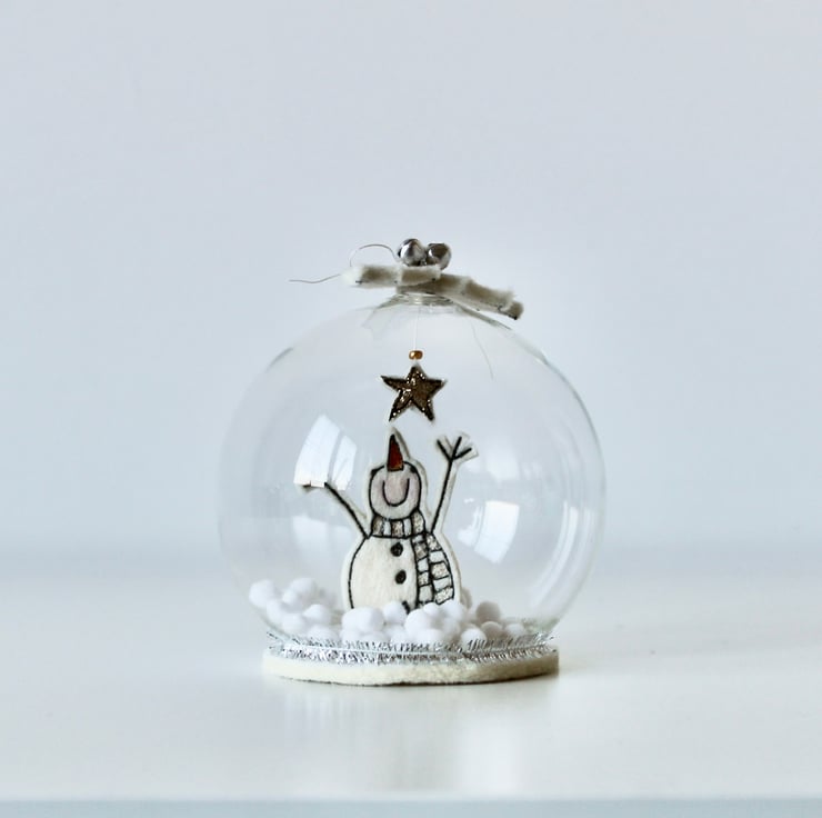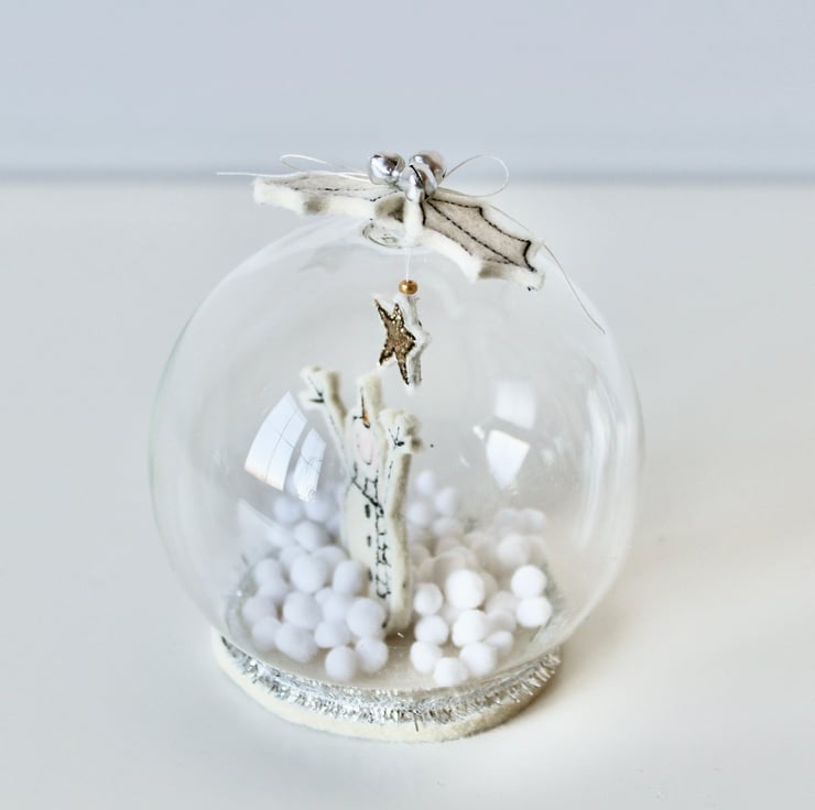 The scene is encapsulated within a glass dome, with tiny snowballs (sorry not real snow!), holly a loft and a sewn circular base completing this delightful decoration.
