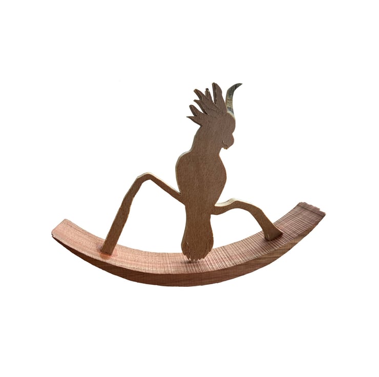 The Rocking Cockatoo is an amusing and whimsical art piece. Crafted from mahogany and plywood, this unique rocking bird will bring a smile to anyone’s face! It’s part of the Quirky Rocker range and features a coat of finishing oil to bring out the natural colours of the wood.