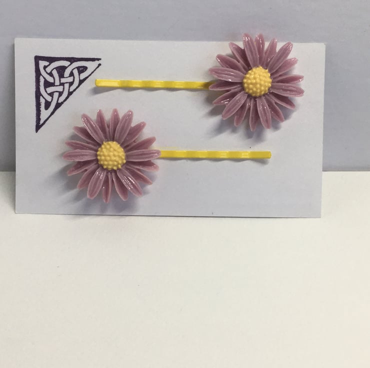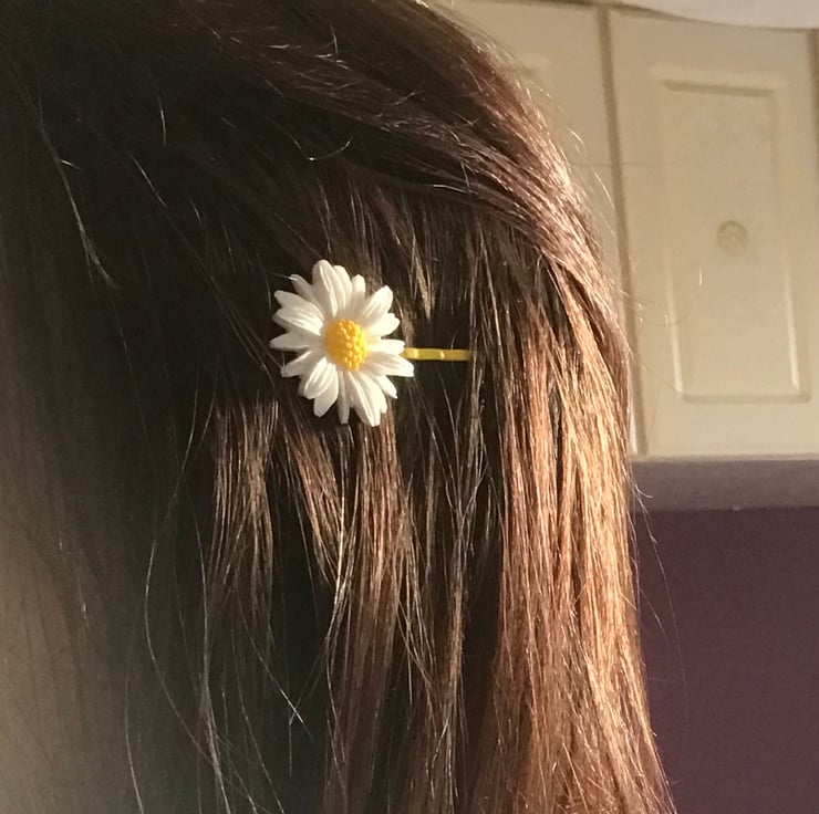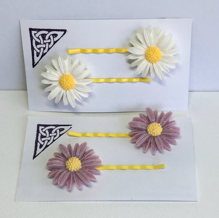 Sunny daisy hair slides! These lucite daisies measure 20mm and are so summery, suitable for both children and adults alike.