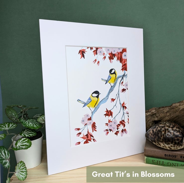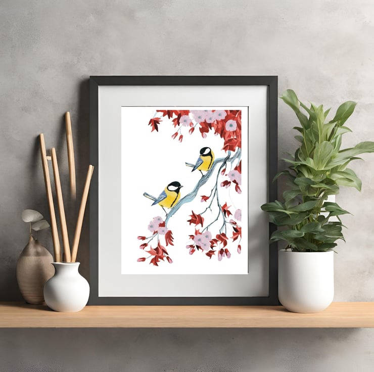 A beautiful painting by The Hedgerow Artist of the great tits that regularly visit my garden. Look faboulous in any room and make a lovely gift too.