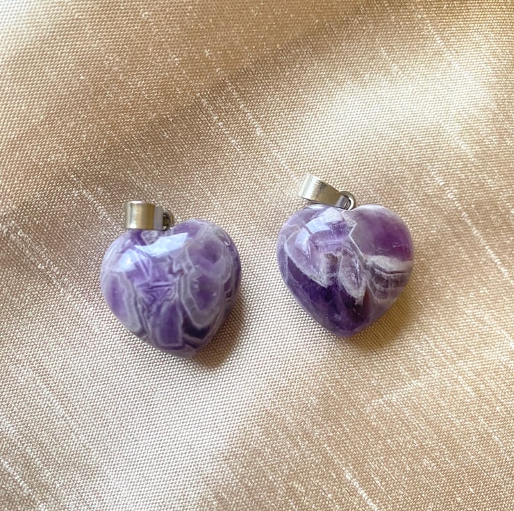 Amethyst Heart Pendant, includes a black cord.