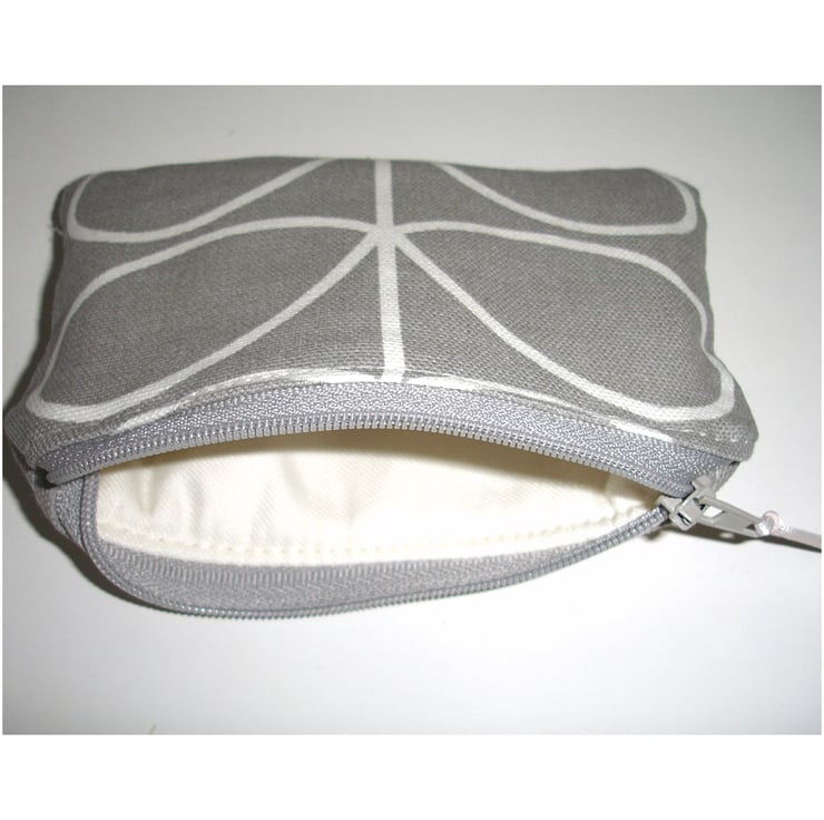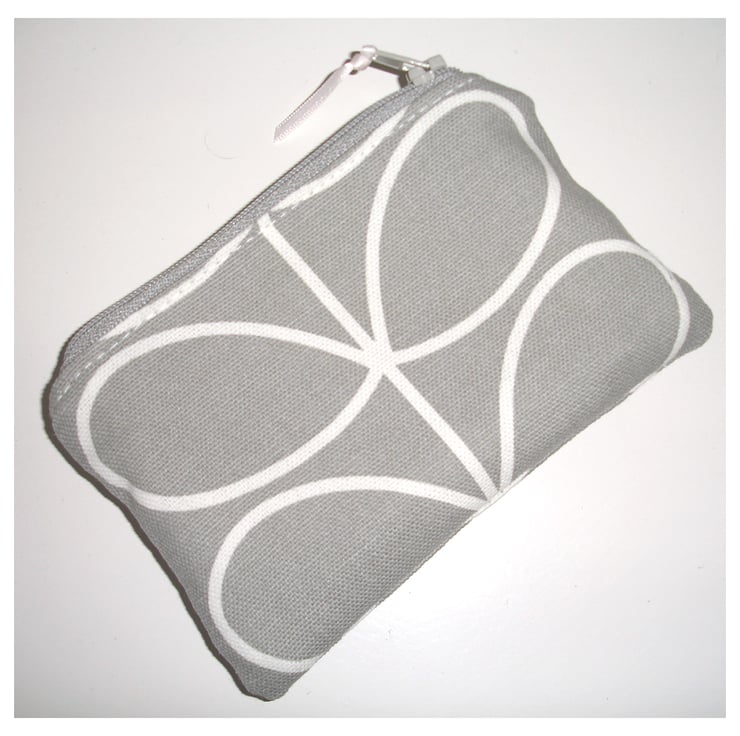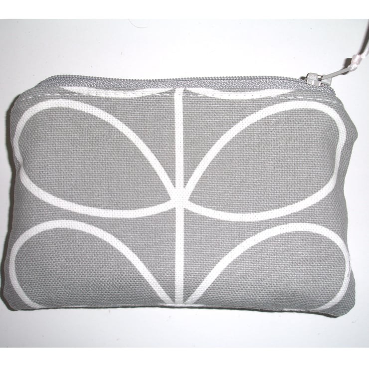 This little zipped coin purse has been created with a silver grey retro pattern stem leaf cotton fabric.