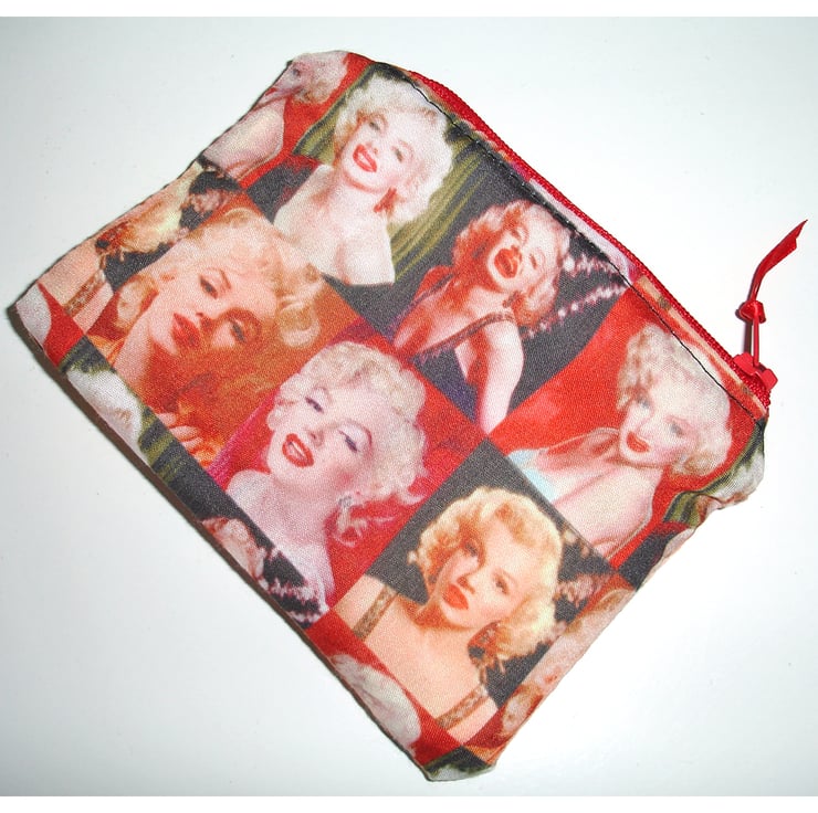 This little zipped coin purse has been created with a 1950s style retro pattern with glamourous Marilyn Monroe portraits.