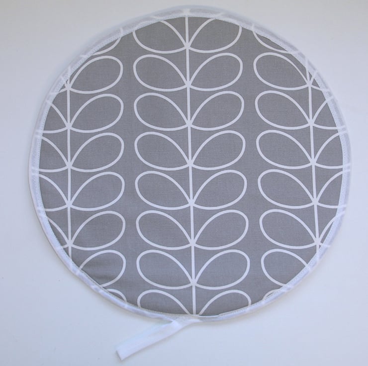 This mat has three layers - Facing cotton fabric, a layer of padding and a layer of towelling - Making it also suitable for mopping up and pot-grabbing!