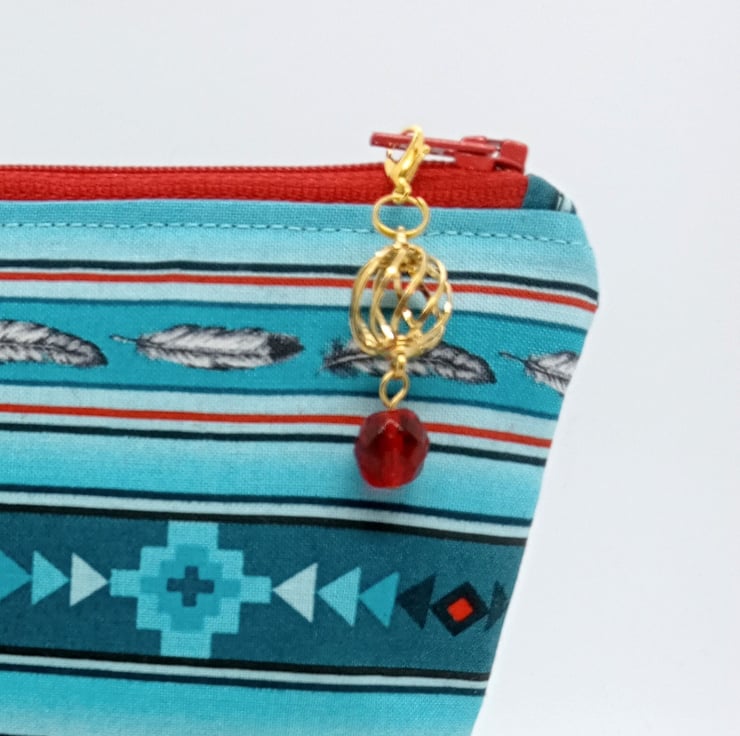 It is wadded for a lovely feel and is lined in black cotton. The special zip pull accents the red in the pattern and the zip.