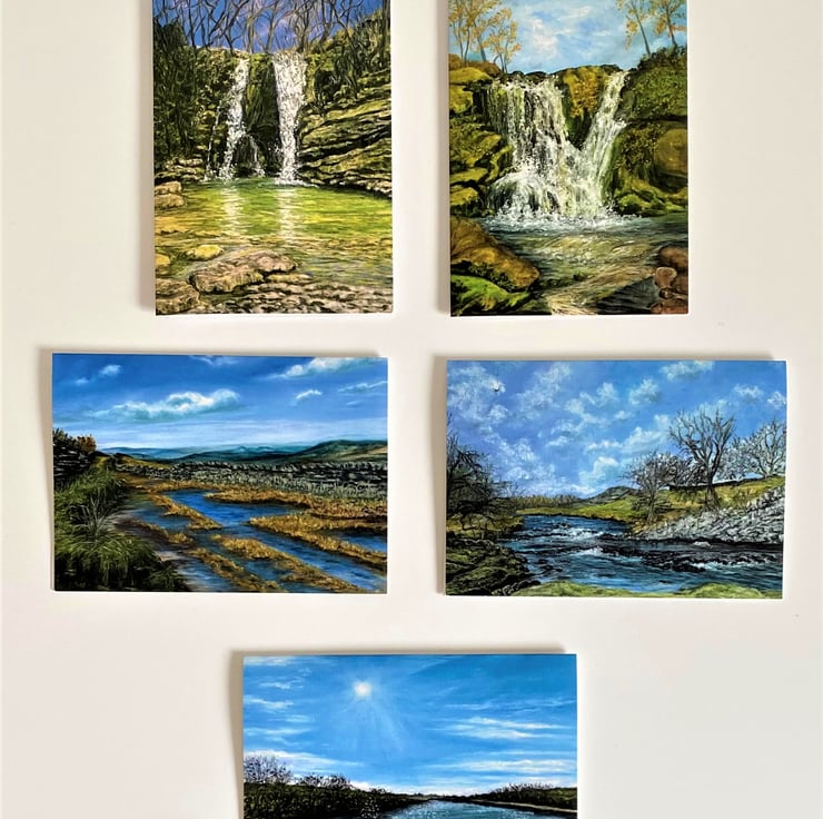 Set of 5 blank A6 cards with white envelopes, from my original artwork featuring scenes from the Yorkshire Dales