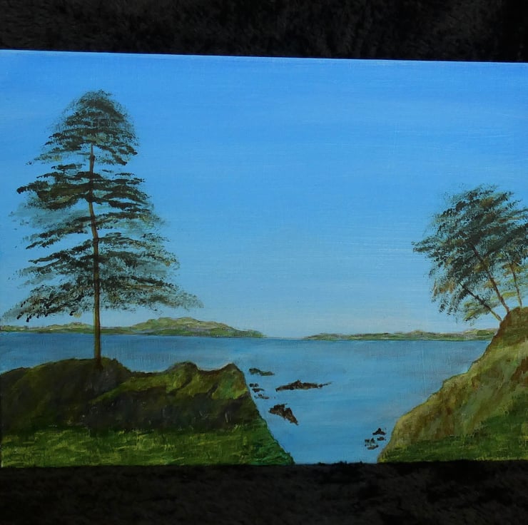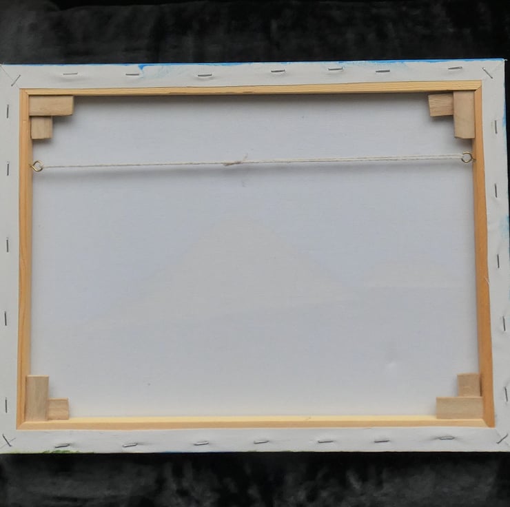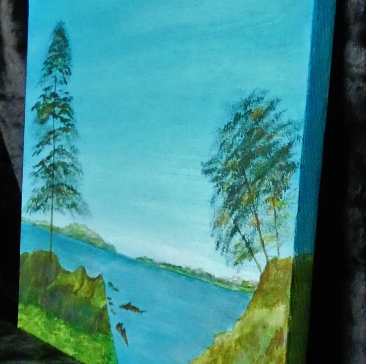 This one-off acrylic painting of a landscape is an original piece or artwork. This is not a print. It has been painted on a stretched box canvas and does not require a frame. The top, bottom and sides have also been painted. This would make a perfect gift for a number of occasions such as a housewarming gift,, an Easter gift a Mothers Day gift, a gift for dad, a best friend gift or just