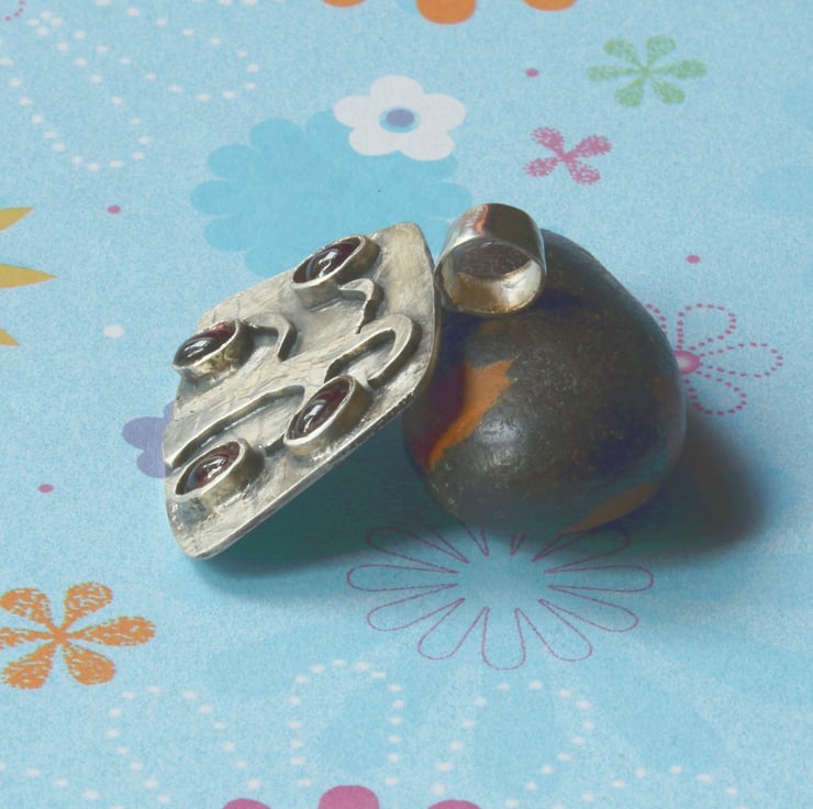 A charming and magical looking 'Tree of Life' pendant designed and made by myself from Sterling Silver and dark red/crimson semi-precious garnet stones. This is my first attempt at this design and I am placing, at sale price, in the Seconds Sunday collection as it is a bit scratched and not quite up to my usual high standards of craftsmanship.