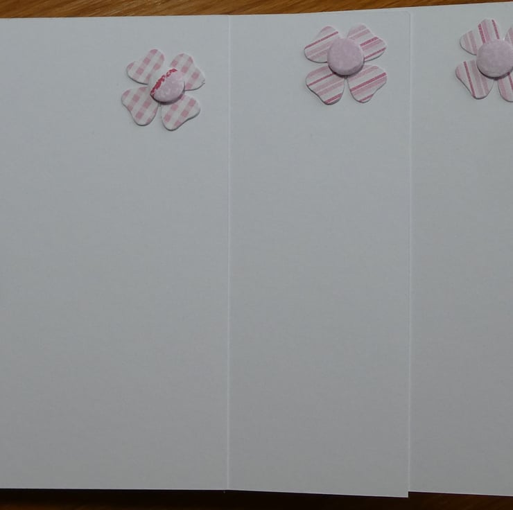 This set of 3 pink and white retro style mini cards has one card of each of 3 designs. With the greetings Thank You, On your Special Day and Just For You, they would be ideal to have on hand for a variety of different ocassions.