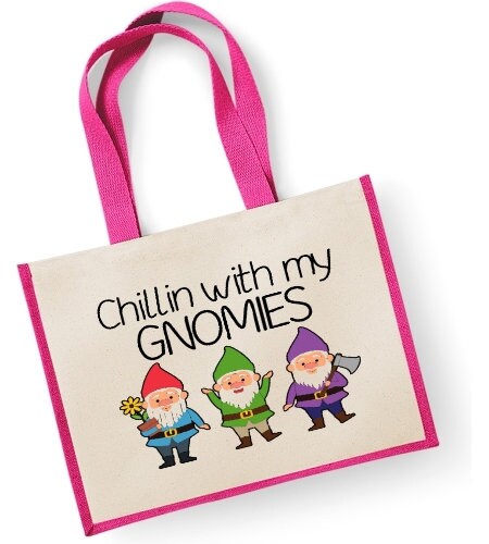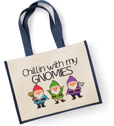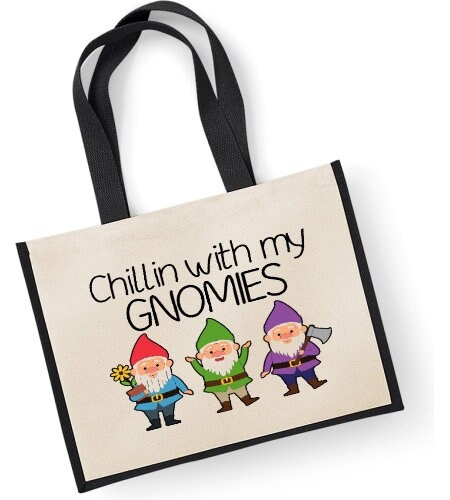 Chillin With My Gnomies Large Shopper Canvas Bag Garden Gardener Gnome Joke Funn