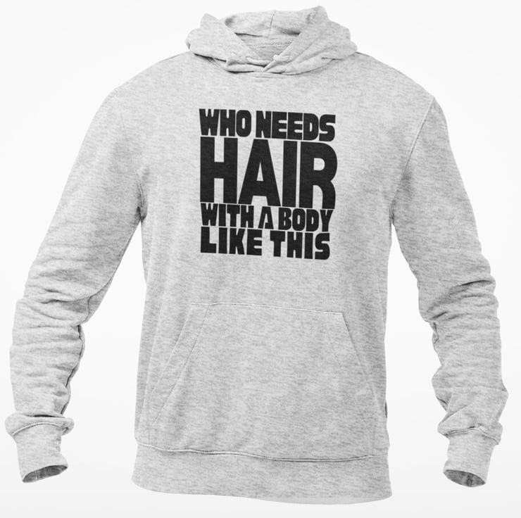 Who Needs Hair With A Body Like This Hooded Sweatshirt Funny Bald Gift Joke