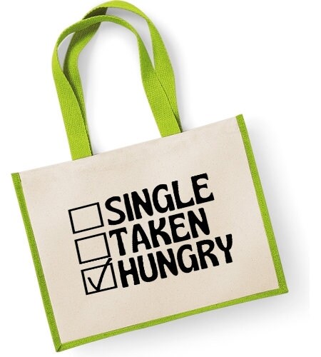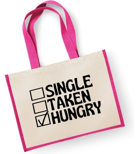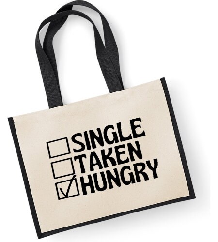 Single Taken Hungry Large Jute Shopper Canvas Lunch Bag Funny Food Lover Present