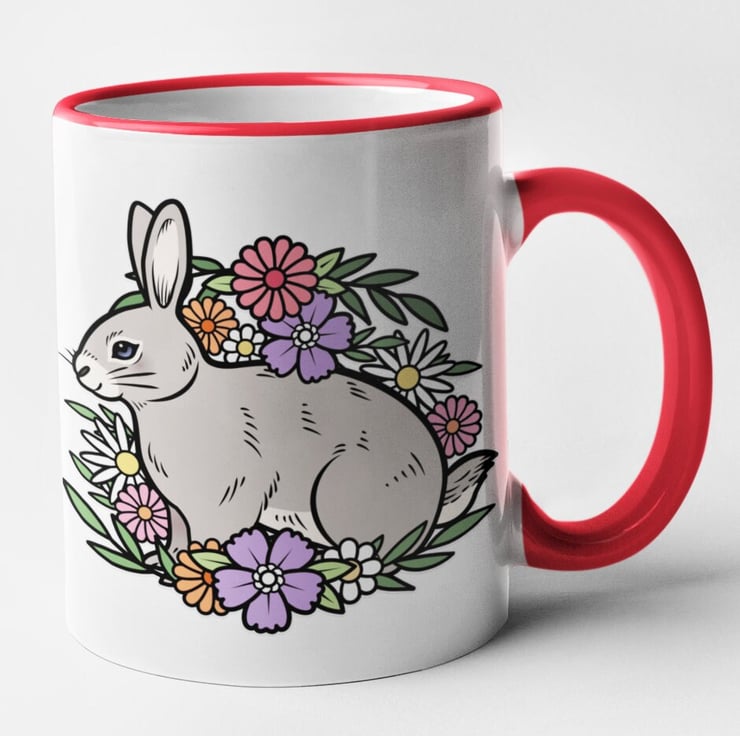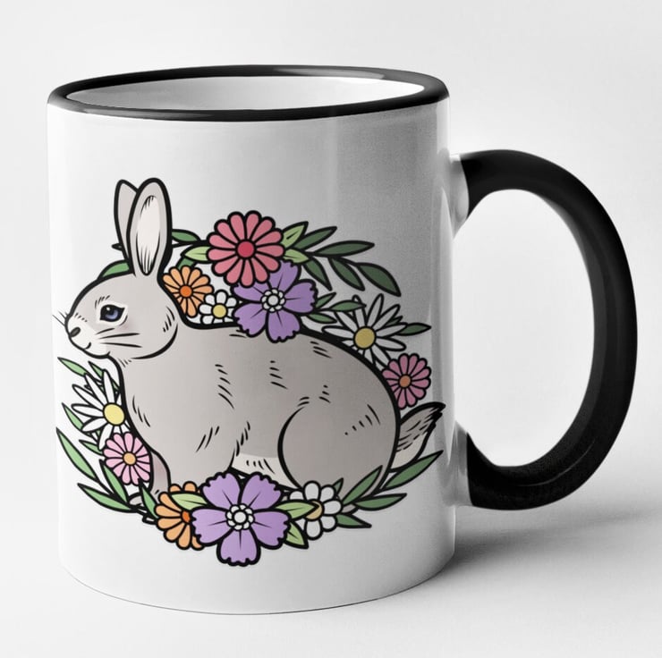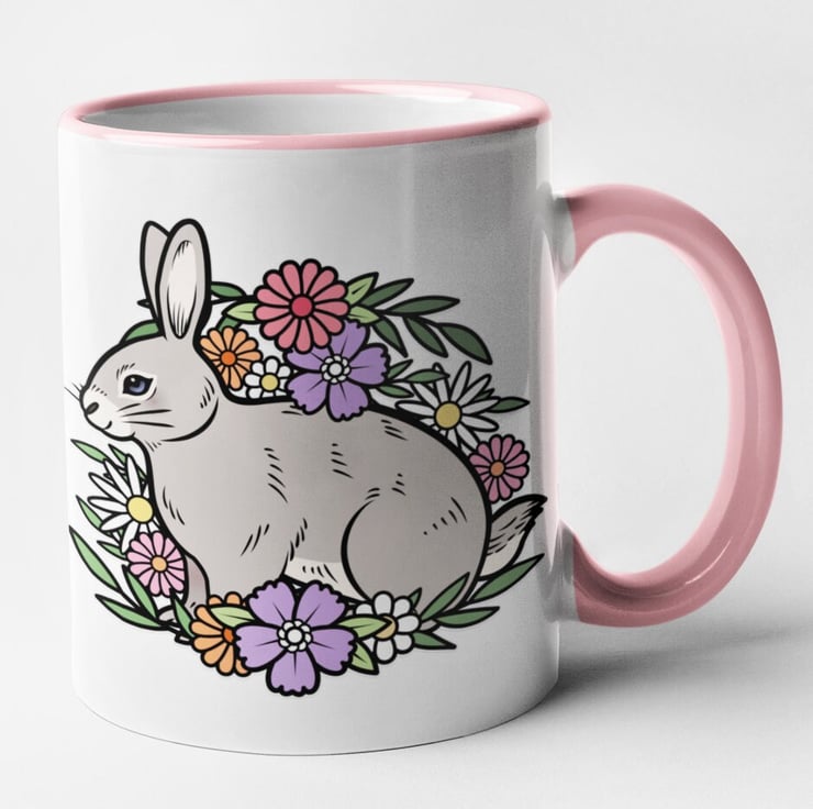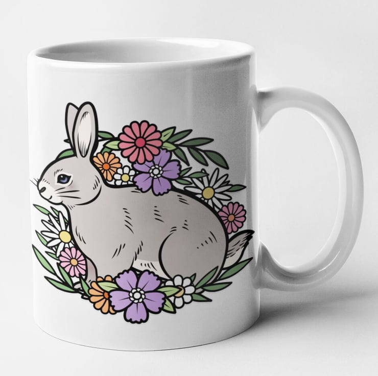Floral Rabbit Mug Cute Rabbit Gift Animal Flower Mug Christmas Birthday Gift
