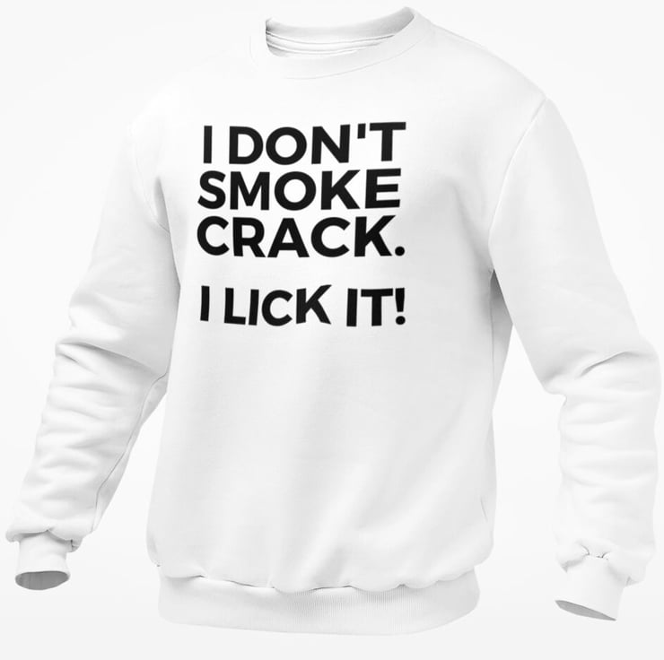I Don't Smoke Crack I Lick It! Jumper Sweatshirt Funny Adult Humour Pullover Top