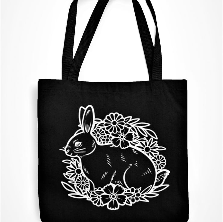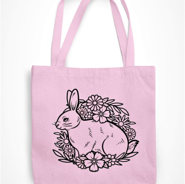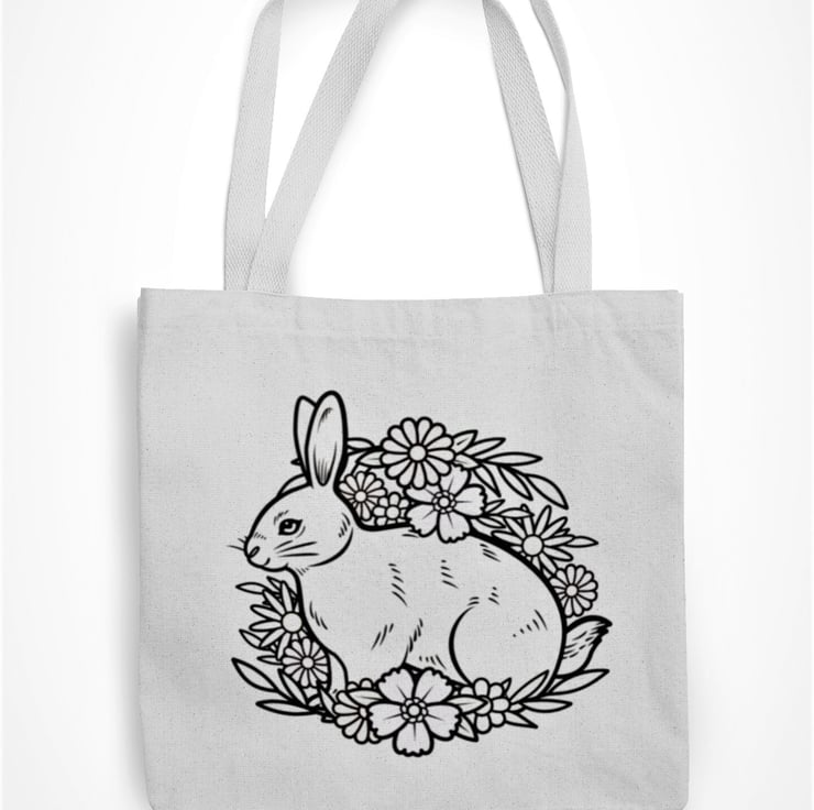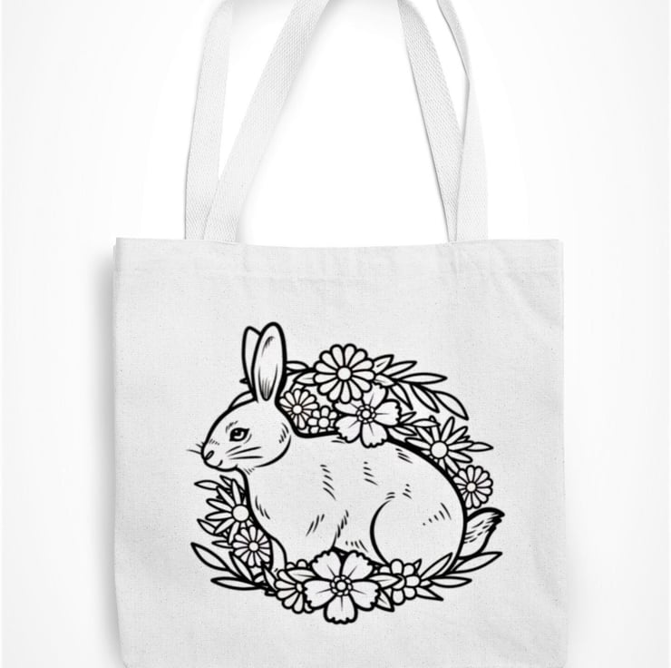 Floral Rabbit Print Tote Bag Eco Friendly Shopping Bag Spring time Easter Bunny