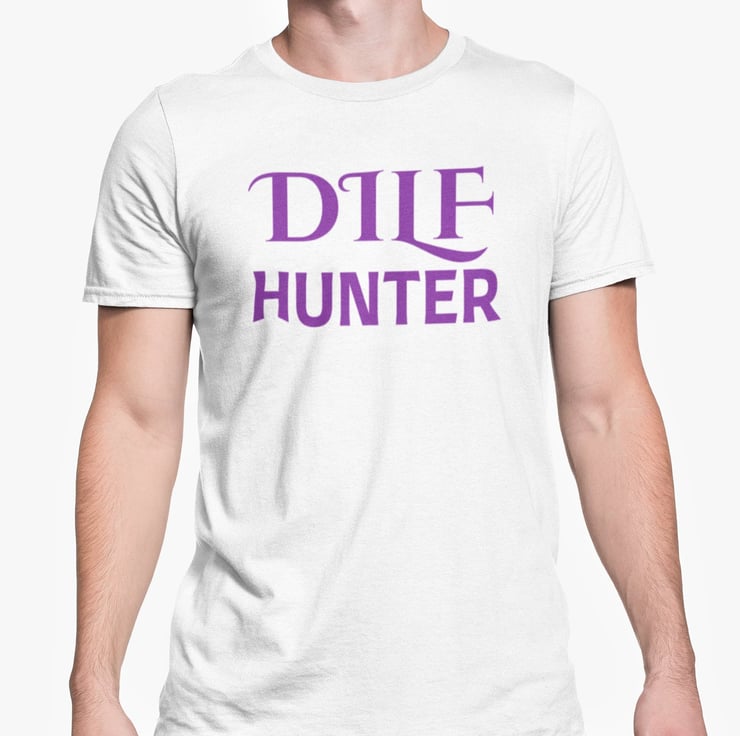 Dilf Hunter T Shirt Novelty Funny Daddy Joke Present Office Banter Friend
