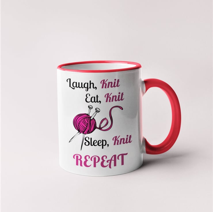 Laugh Eat Sleep Knit Repeat Cute Mug Design Great Gift Idea Grandma's Nan's