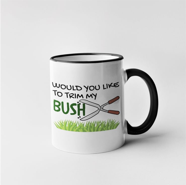 Would You Like To Trim My Bush Novelty Outdoor Mug Funny Rude Joke