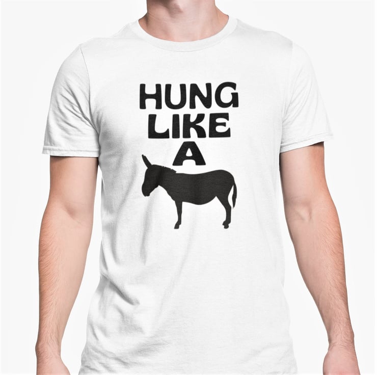 Hung Like A Donkey T Shirt Rude Big willy Joke Birthday Christmas Present Tee