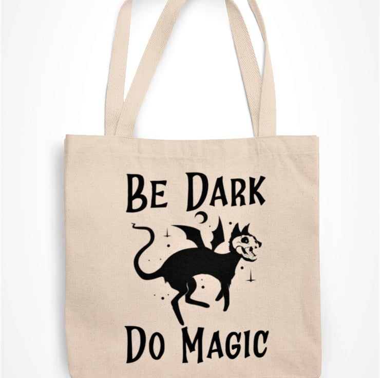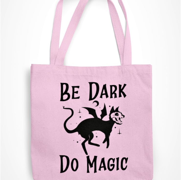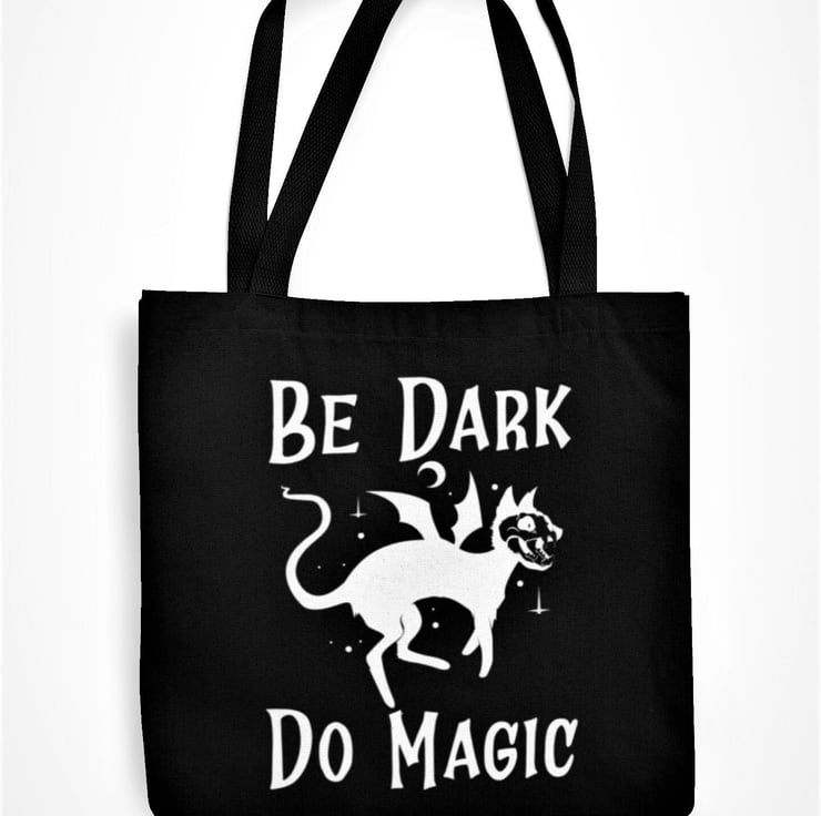 Be Dark Do Magic Tote Bag Gothic Halloween Witch Black Familiar Demon Cat