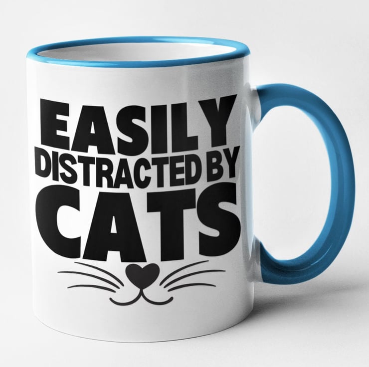 Easily Distracted By Cats Mug Funny Novelty Cat Pet Owner Coffee Cup