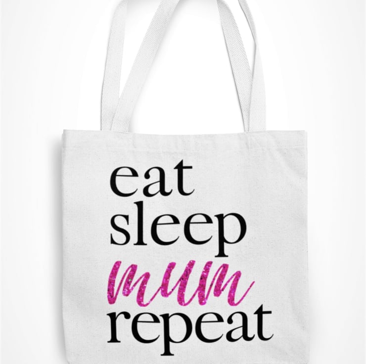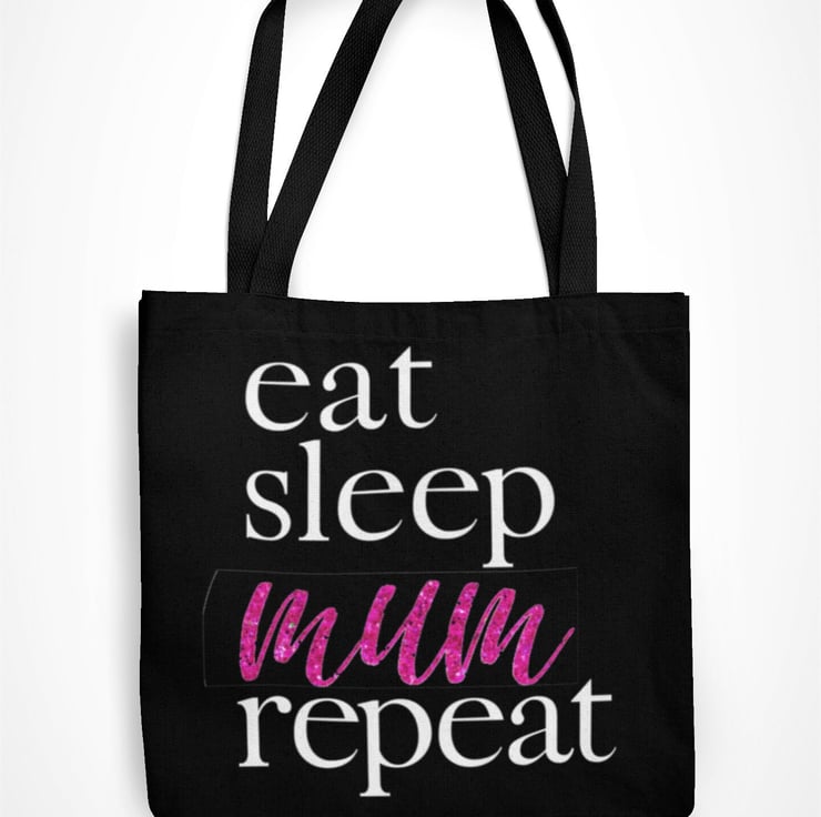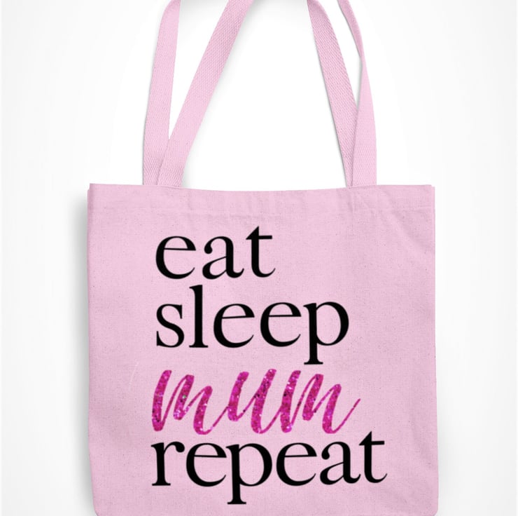 Eat Sleep Mum Repeat Tote Bag Pink Glitter Text Funny Mum Present Birthday Gift