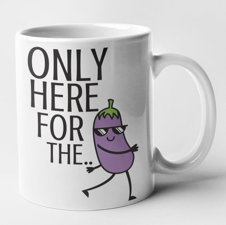 Only Here For The D Mug Eggplant Emoji Funny Novelty Gift Joke Present