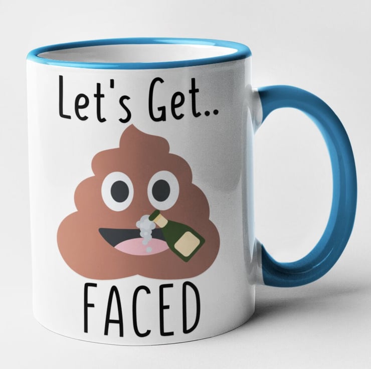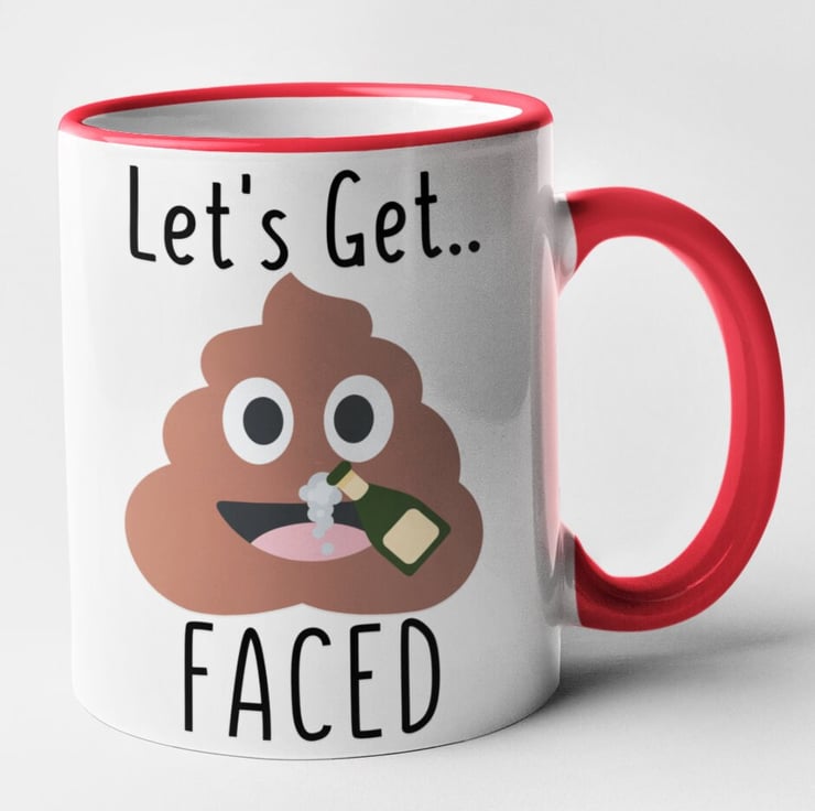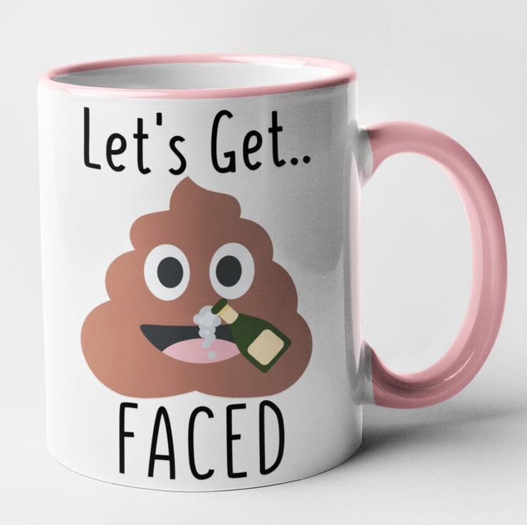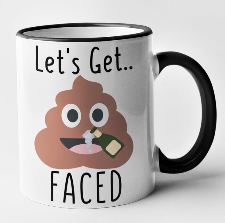 Let's Get ... Faced Mug Novelty Poo Emoji Funny Party Cup Friend BFF Gift Work