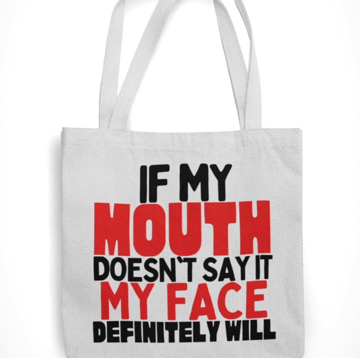 If My Mouth Doesnt Say It, My Face Definitely Will! Tote bag Sarcastic Angry