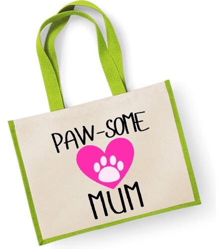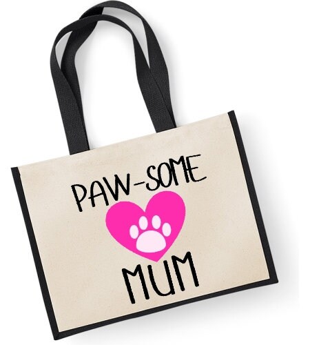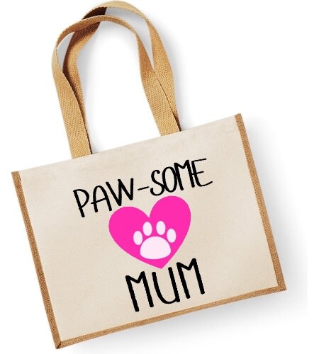 Paw-Some Mum Large Jute Shopper Bag Mothers Day Birthday Christmas Pet Paw Cat D