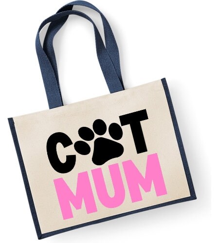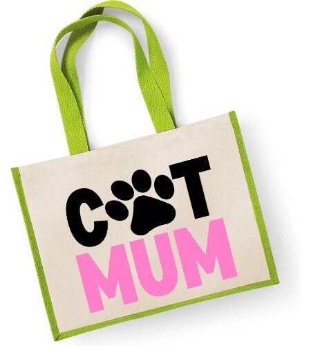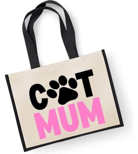 Cat Mum Paw Print Large Jute Classic Shopper Canvas Bag - Cat Lover Gift