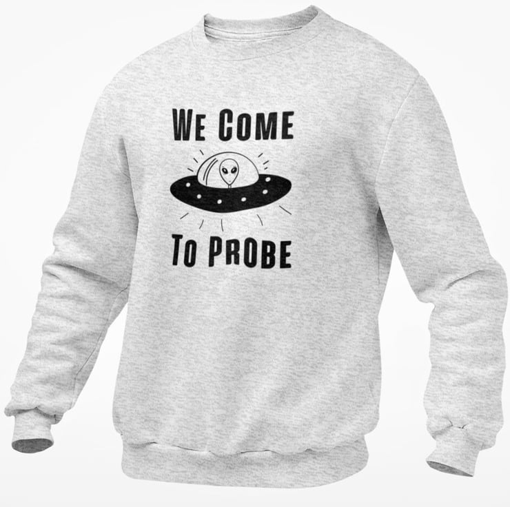 We Come To Probe Jumper Sweatshirt Alien UFO Funny Joke Adult Humour Halloween