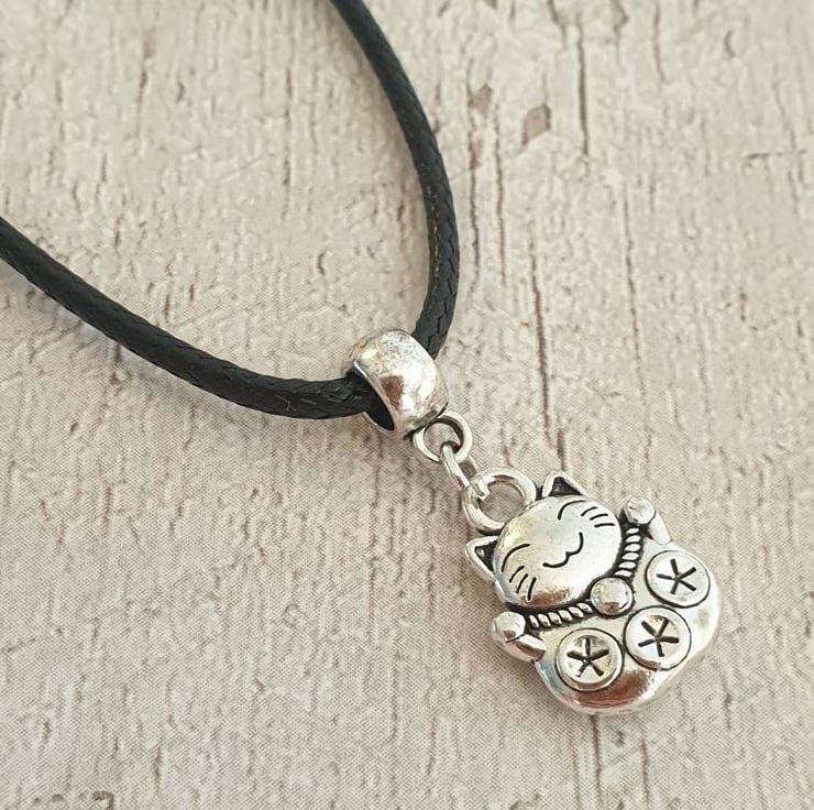 Antique silver charm on either black waxed cord or silver plated curb chain
