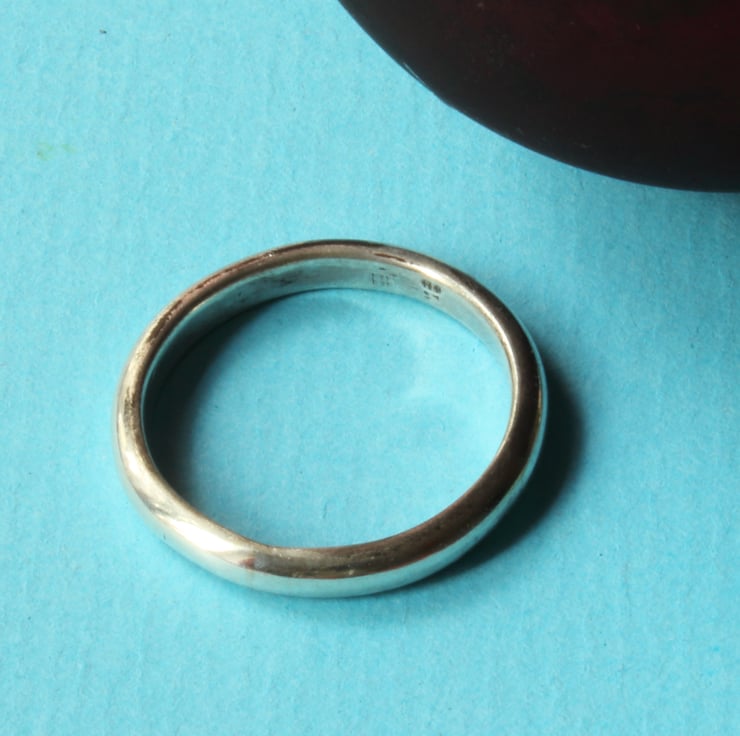 A classic and elegant Sterling Silver ring that is 3mm wide by 2mm thick and Size Q. Originally made to order but turned out the wrong size due to some confusion - this is why I am placing it in the Seconds Sunday sale - it is made very nicely!.