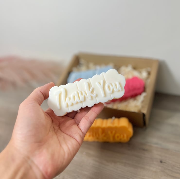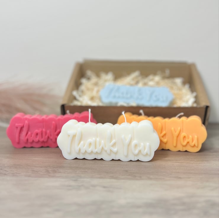 Perfect thank you gifts. These “Thank You” candles make a perfect Thank you gift with or without a card, or can be used as part of a gift hamper / gift set. The candles have two cotton wicks and comes in beautiful soft colours. They can also be used as party favours for weddings and other special occasion events.