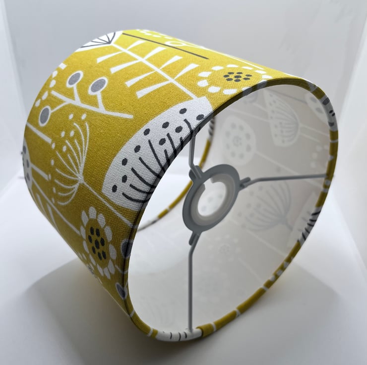 The shade can be used as a table lamp or ceiling pendant, with an adapter ring making it suitable for UK and EU light fittings. The lampshade lining is made from a PVC based product that has been tested in the lighting association laboratories and has passed the glow wire test, ensuring it is fire resistant and complies with BS EN 60598-1-2008, which is the British standard for luminaries. Fabrics that are attached to this PVC product will become fire resistant.