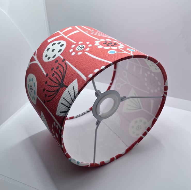 The shade can be used as a table lamp or ceiling pendant, with an adapter ring making it suitable for UK and EU light fittings. The lampshade lining is made from a PVC based product that has been tested in the lighting association laboratories and has passed the glow wire test, ensuring it is fire resistant and complies with BS EN 60598-1-2008, which is the British standard for luminaries. Fabrics that are attached to this PVC product will become fire resistant.