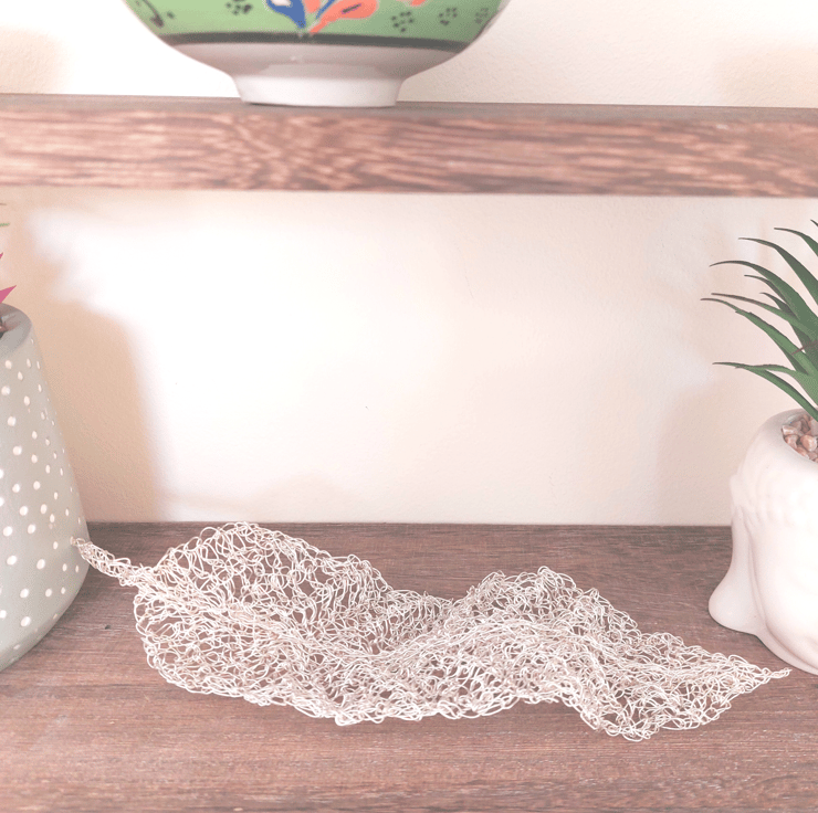 This listing is for one limited edition piece of contemporary crochet, hand crafted using silver coated copper wire, specifically the feather shown in the images. (Other items shown in any of the images are not included)