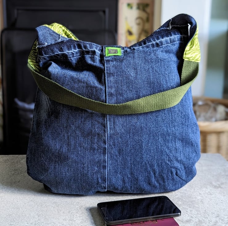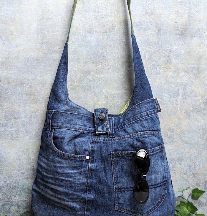 A large bag from a large pair of jeans, this recycled denim shoulder hobo bag has been handmade by piecing together and upcycling a pair of pre-loved denim jeans. It’s large and roomy, slouchy and generous - perfect for all your everyday essentials and more!