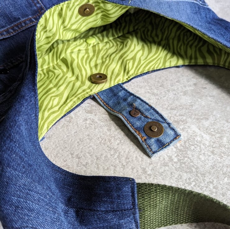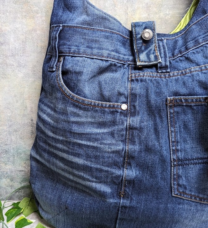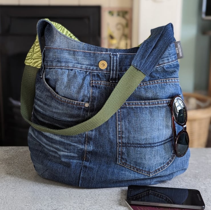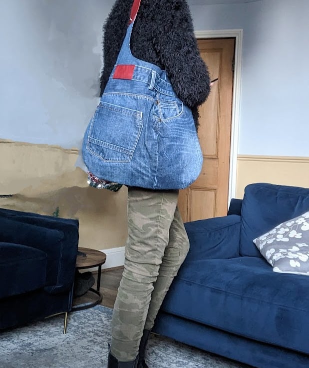 The back of the bag has detailing from the original jeans and uses the interesting 'worn' bits!! Don't worry though, they've all been reinforced before using.