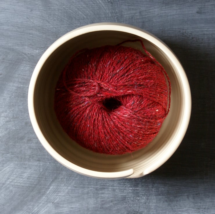 Hand thrown on my potters wheel this ceramic yarn bowl is glazed in ice blue. It features a gently bulbed shape to cup balls of yarn inside as they're being used. Using a yarn bowl prevents your balls of yarn from rolling around on the floor away from pets or little wandering hands.