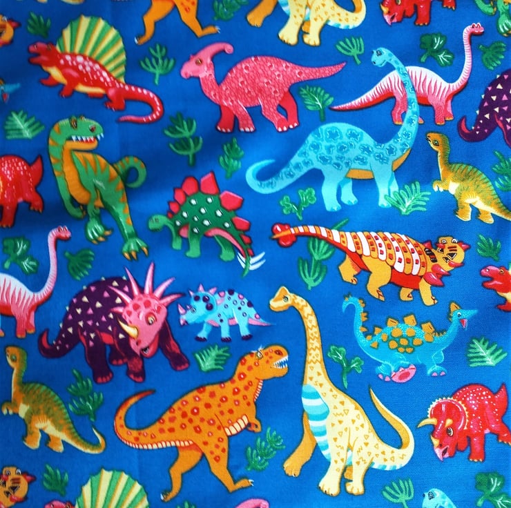 Have you ever met a kid who doesn't love dinosaurs? I originally made aprons for my own children, now in their forties and fifties. I cannot resist attractive cotton fabrics for kids. Over the years I have made and sold hundreds of these little aprons. As soon as I saw this lovely dinosaur fabric I fell in love with it.