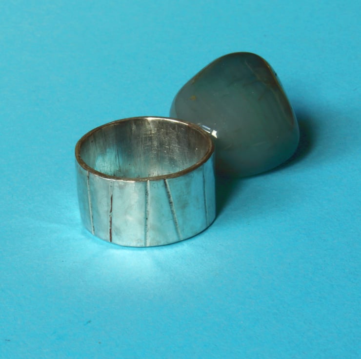 An early trial version of this ring, which is listed elsewhere on the shop. This example is not quite up tom my usual exacting craft levels but I am happy to sell it at great discount for Folksy's Seconds Sunday. It is a pretty fancy silver band ring at a very cheap price.