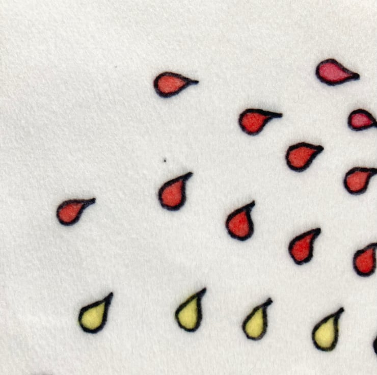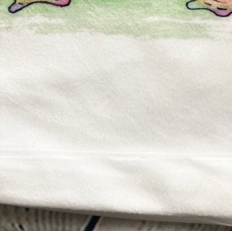 SECONDS INFO - the artwork wasn’t cleaned up before sending it to print (oops) and has the odd tiny little paint speck in the artwork. (See photos) It also has a heat press mark in the fabric.