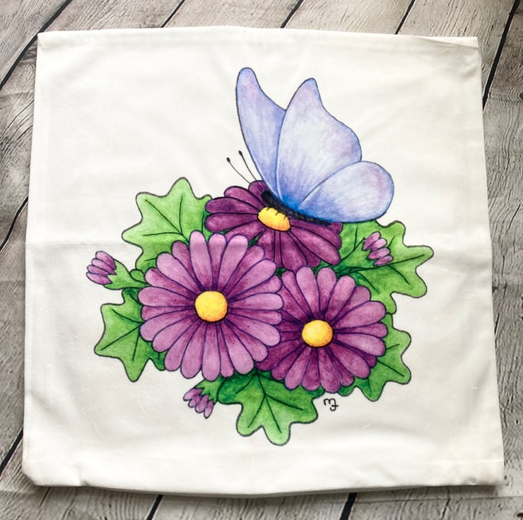 The cushion cover features my original artwork, professionally printed.