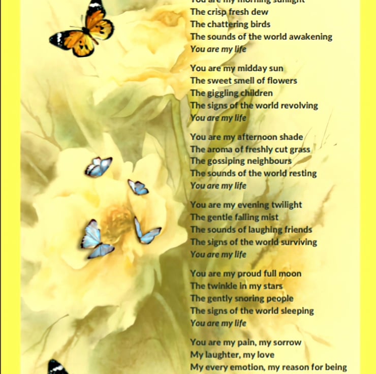 An original poem expressing love and feelings about the most important people in your life.
